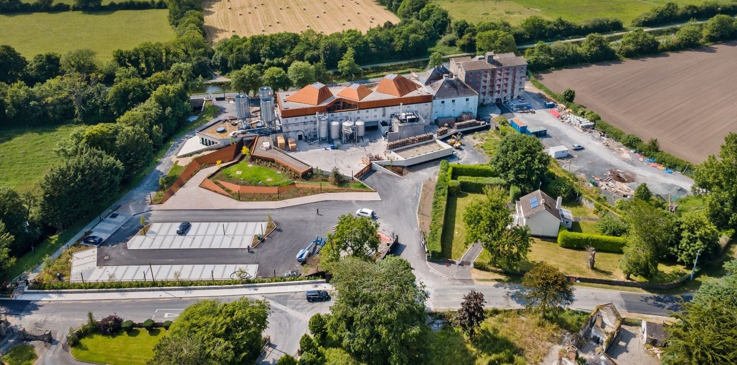The Church of Oak Distillery stands as a landmark restoration and adaptive reuse of the historic Ballykelly Mills, positioned along the Grand Canal in Monasterevin, Co. Kildare. This transformation exemplifies a sensitive balance between contemporary sustainable construction and the preservation of the site’s rich industrial heritage.